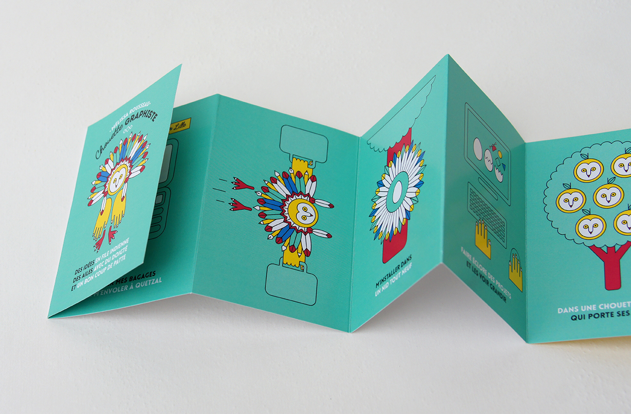 Dépliant personnalisé pour une candidature à un poste de graphiste dans une « chouette » agence de communication